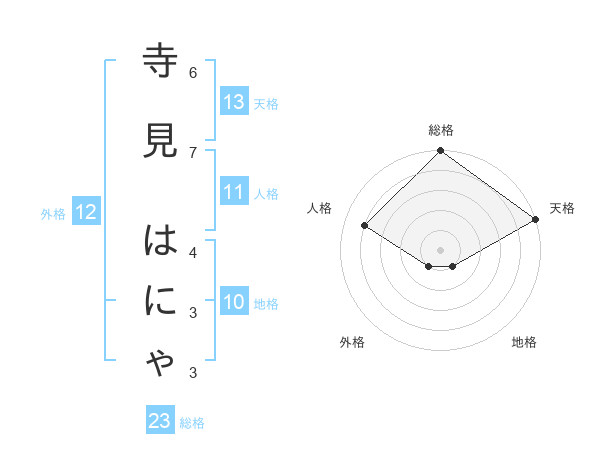 寺見 はにゃさんの天格は13画の5点!
