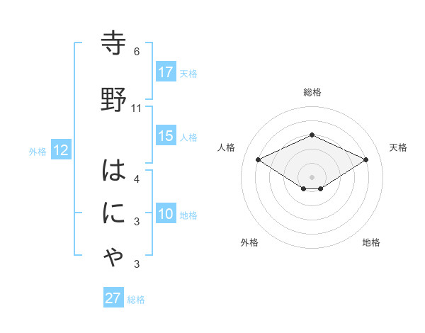 寺野 はにゃさんを姓名の画数から五運を鑑定