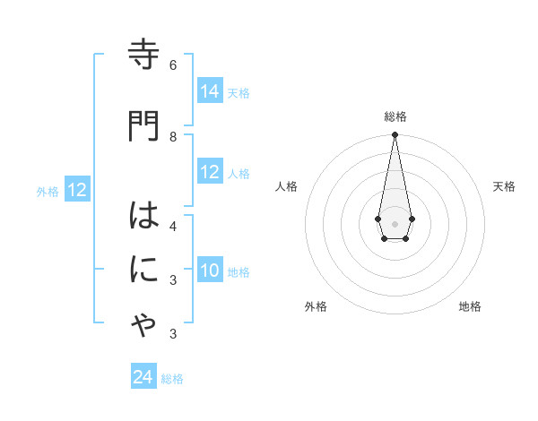 寺門 はにゃさんを姓名の画数から五運を鑑定