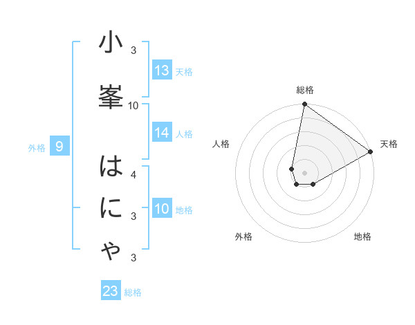 小峯 はにゃさんを姓名の画数から五運を鑑定