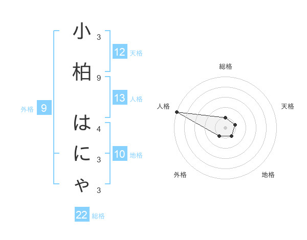 小柏 はにゃさんの総格は22画の1点!