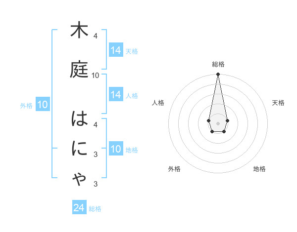 木庭 はにゃさんの総格は24画の5点!