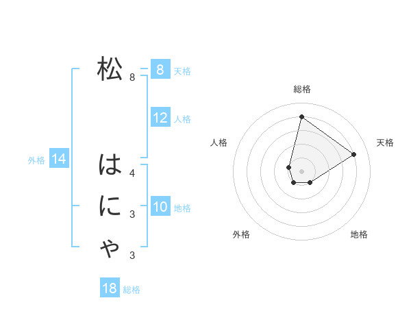 松 はにゃさんの総格は18画の4点!