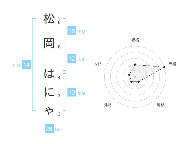 松岡 はにゃさんの天格は16画の5点!
