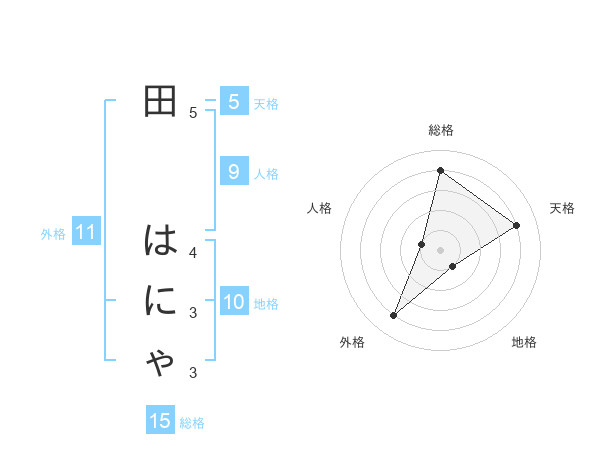 田 はにゃさんの総格は15画の4点!