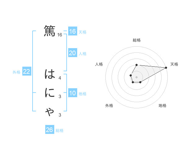 篤 はにゃさんの総格は26画の2点!