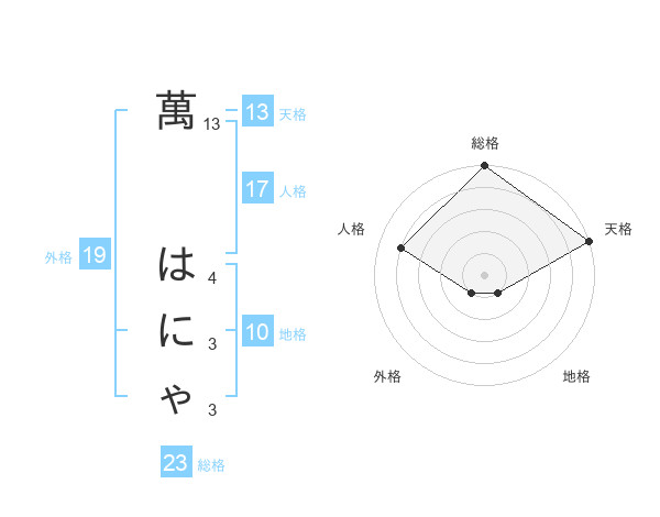 萬 はにゃさんの天格は13画の5点!