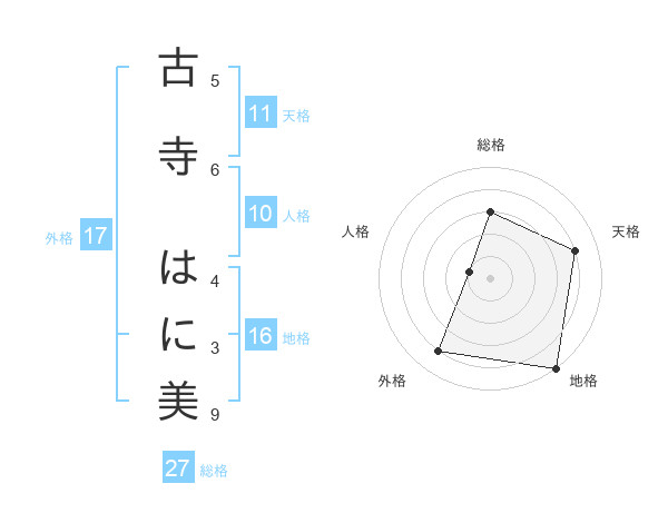 古寺 はに美さんを姓名の画数から五運を鑑定