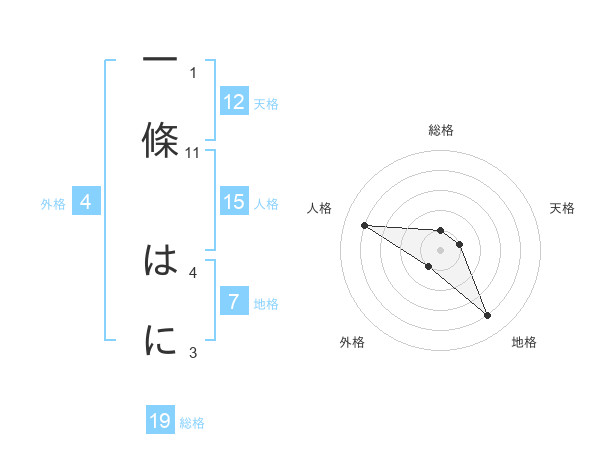 一條 はにさんの総格は19画の1点!