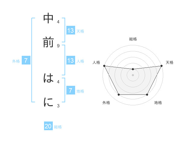 中前 はにさんの天格は13画の5点!