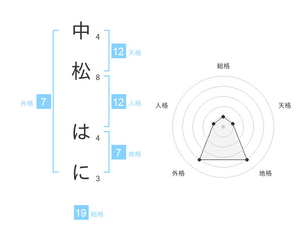 中松 はにさんの外格は7画の4点!