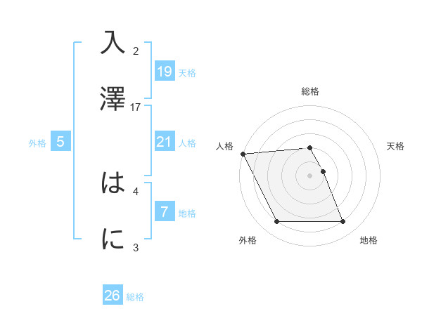入澤 はにさんの総格は26画の2点!