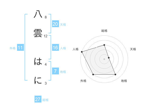 八雲 はにさんの外格は11画の4点!