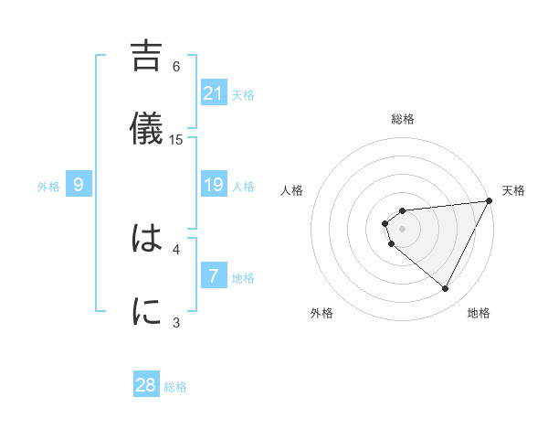 吉儀 はにさんの天格は21画の5点!