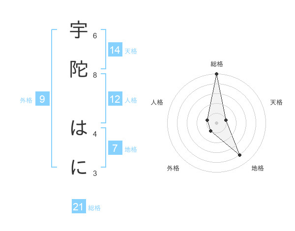 宇陀 はにさんの総格は21画の5点!