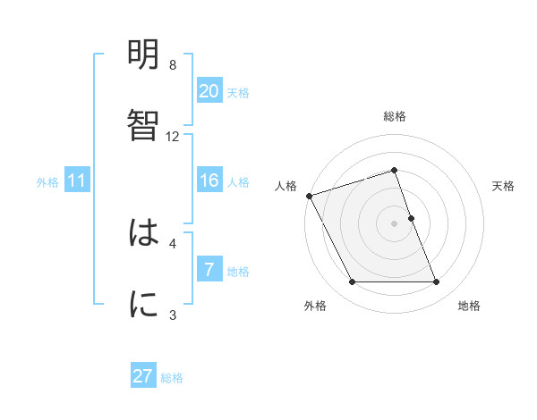 明智 はにさんの外格は11画の4点!