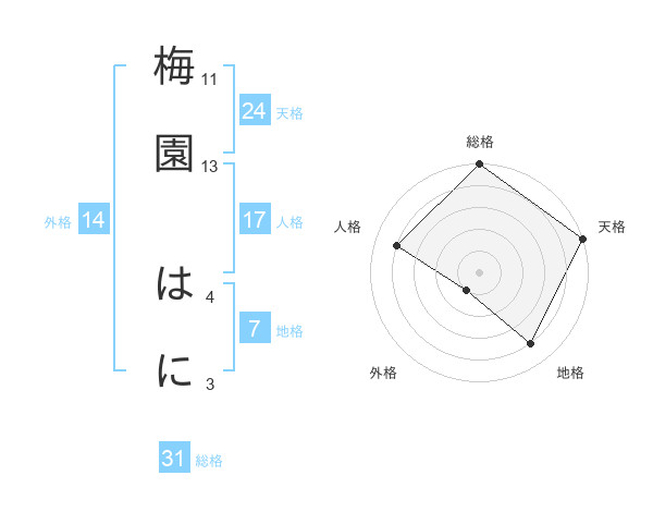 梅園 はにさんの天格は24画の5点!