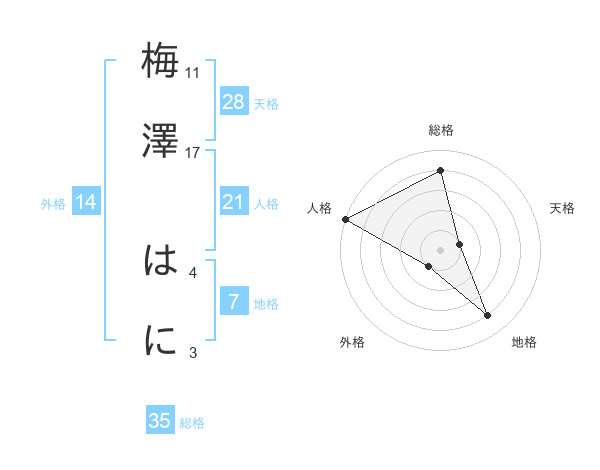 梅澤 はにさんの総格は35画の4点!