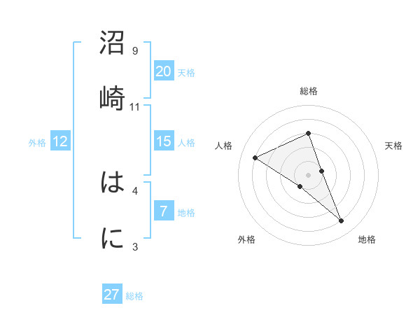 沼崎 はにさんを姓名の画数から五運を鑑定
