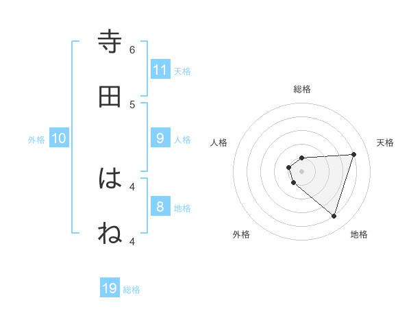 寺田 はねさんの天格は11画の4点!