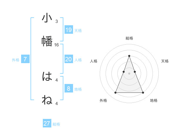 小幡 はねさんの総格は27画の3点!