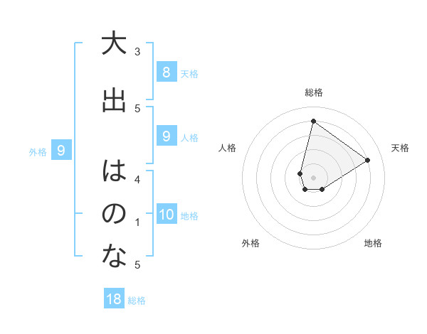大出 はのなさんの総格は18画の4点!