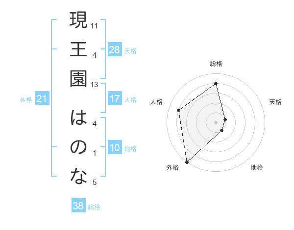 現王園 はのなさんを姓名の画数から五運を鑑定
