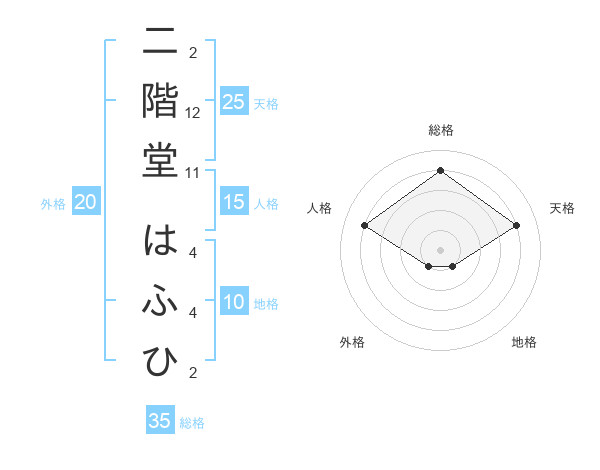 二階堂 はふひさんを姓名の画数から五運を鑑定