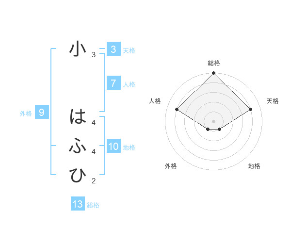小 はふひさんの総格は13画の5点!