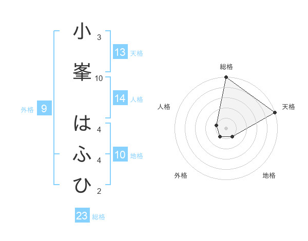 小峯 はふひさんを姓名の画数から五運を鑑定