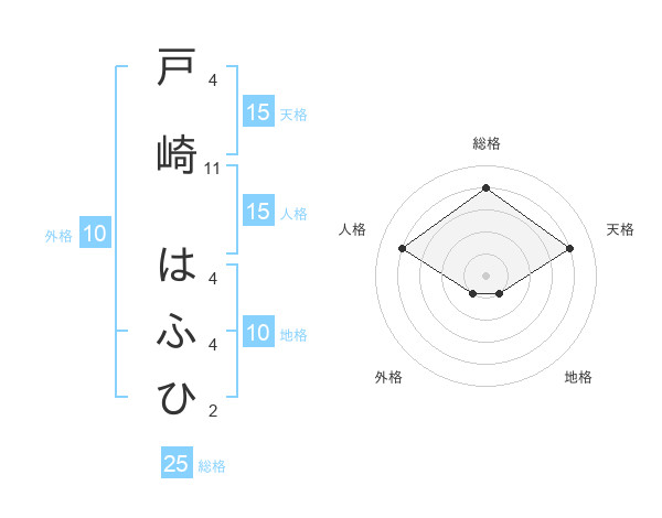 戸崎 はふひさんの天格は15画の4点!