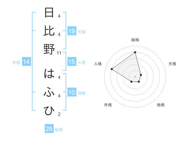 日比野 はふひさんの総格は29画の4点