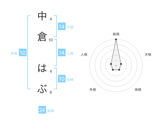中倉 はぶさんを姓名の画数から五運を鑑定