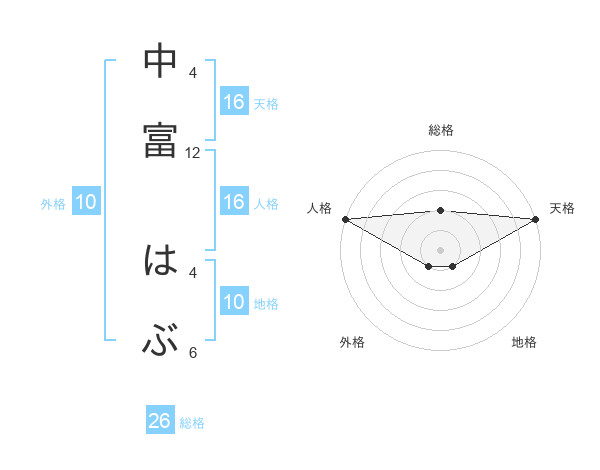 中富 はぶさんの天格は16画の5点!