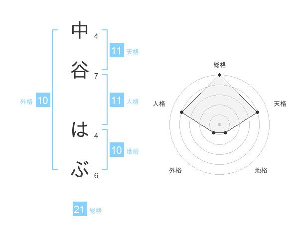中谷 はぶさんを姓名の画数から五運を鑑定
