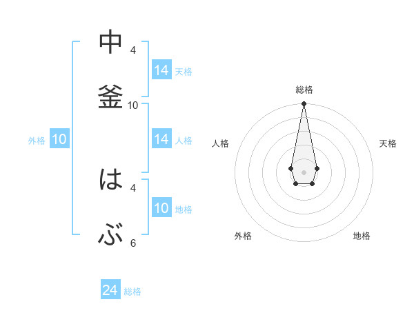 中釜 はぶさんを姓名の画数から五運を鑑定
