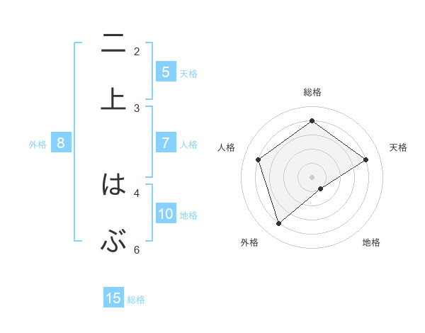 二上 はぶさんの外格は8画の4点!