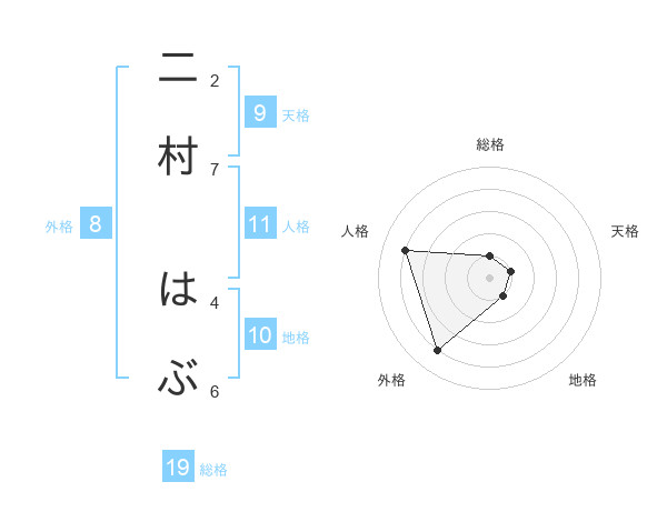 二村 はぶさんの外格は8画の4点!