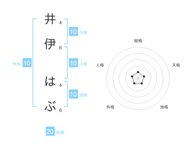井伊 はぶさんを姓名の画数から五運を鑑定