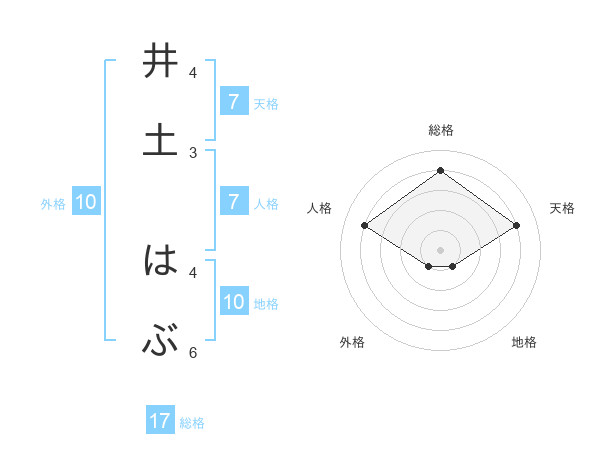 井土 はぶさんの総格は17画の4点!