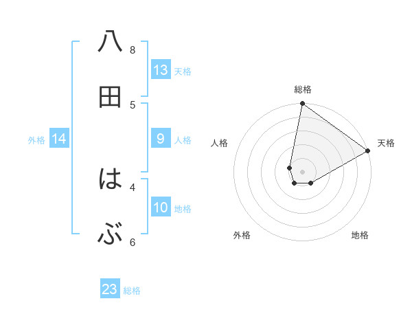 八田 はぶさんの総格は23画の5点!