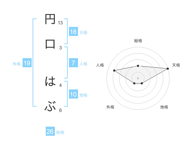円口 はぶさんの総格は26画の2点!
