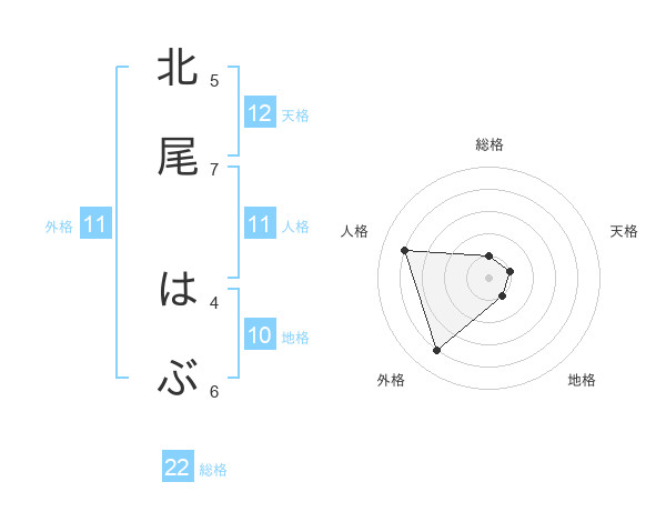 北尾 はぶさんを姓名の画数から五運を鑑定