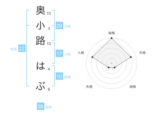 奥小路 はぶさんの総格は39画の5点!