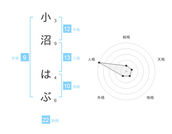小沼 はぶさんの天格は12画の1点!