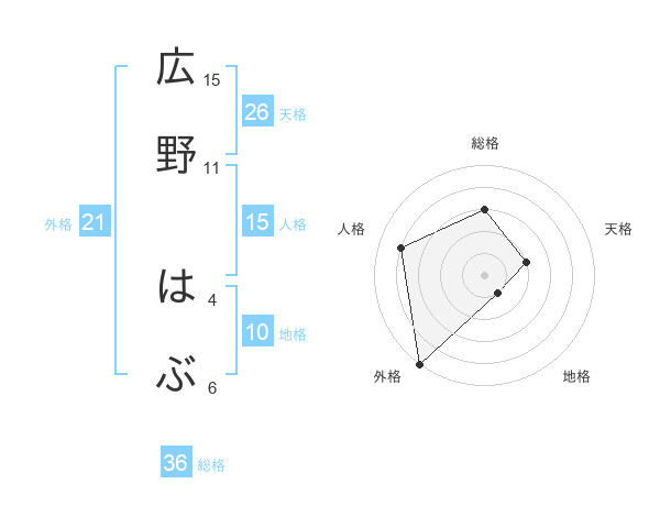 広野 はぶさんの外格は21画の5点!
