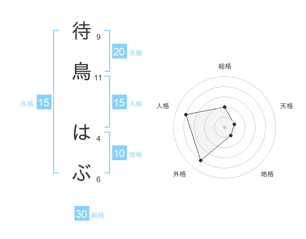 待鳥 はぶさんの外格は15画の4点!