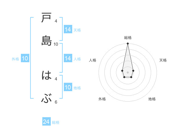 戸島 はぶさんの総格は24画の5点!