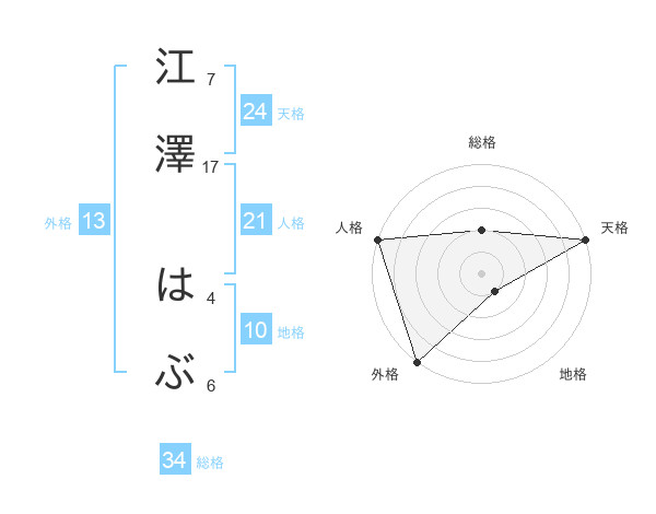江澤 はぶさんの外格は13画の5点!