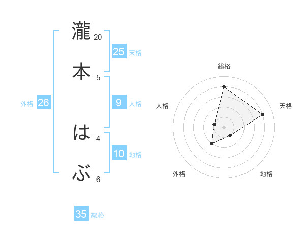 瀧本 はぶさんの総格は35画の4点!